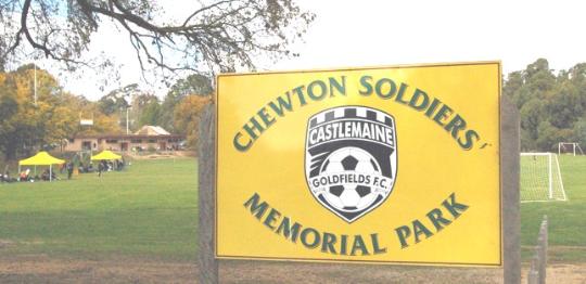 The home ground of the CASTLEMAINE GOLDFIELDS F.C. is the Chewton Soldiers Memorial Park situated on the corner Fryers Road and Pyrenees Highway in the picturesque rural township of Chewton, about four kilometres east of Castlemaine.